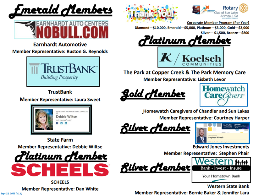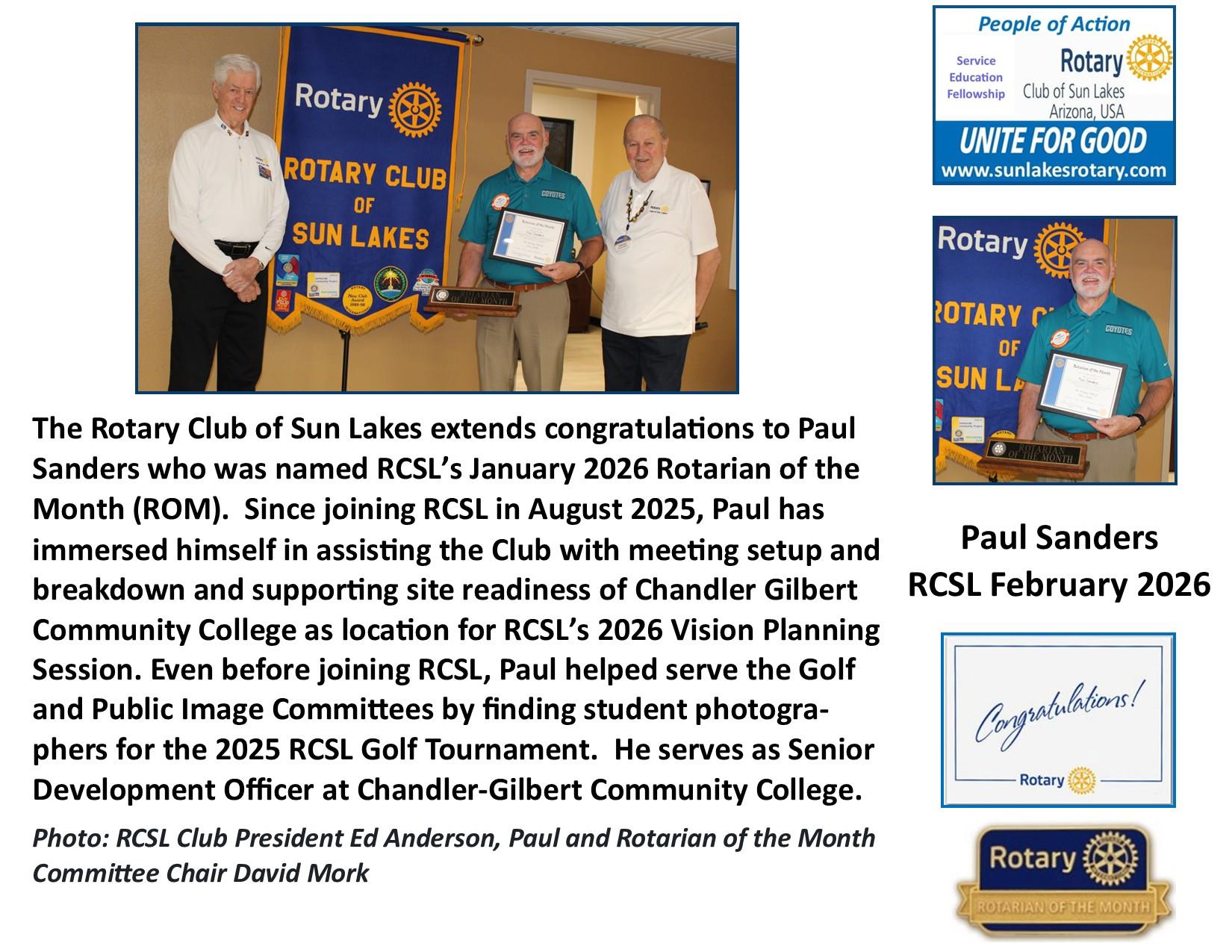 Rotary Club of Sun Lakes Rotarians are "people of action." The Club recently participated in East Valley community service and education projects: